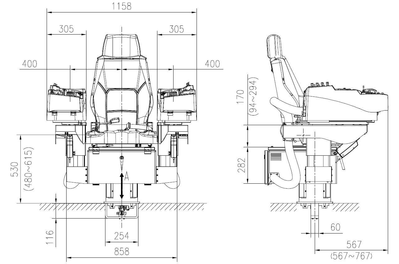 - 左右侧操作箱倾斜角度调整:-10°~20°